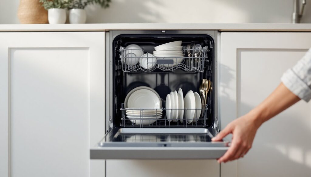 Interior design is practical. Adjustable racks, fold-down tines, and a separate cutlery basket make loading intuitive. Noise levels typically range from 47–52 decibels, which is quiet enough for open-concept kitchens but noticeably louder than premium brands (which run closer to 38–42 dB). The stainless steel finish looks clean and modern, fitting into most kitchen aesthetics without standing out awkwardly. Some models include a delay start function, which lets you schedule a wash for off-peak utility hours. It’s not revolutionary, but these features solve real problems for real kitchens.